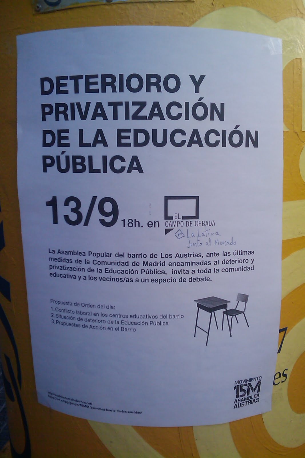 Reunión urgente ataques educación pública. Barrio de los Austrias
