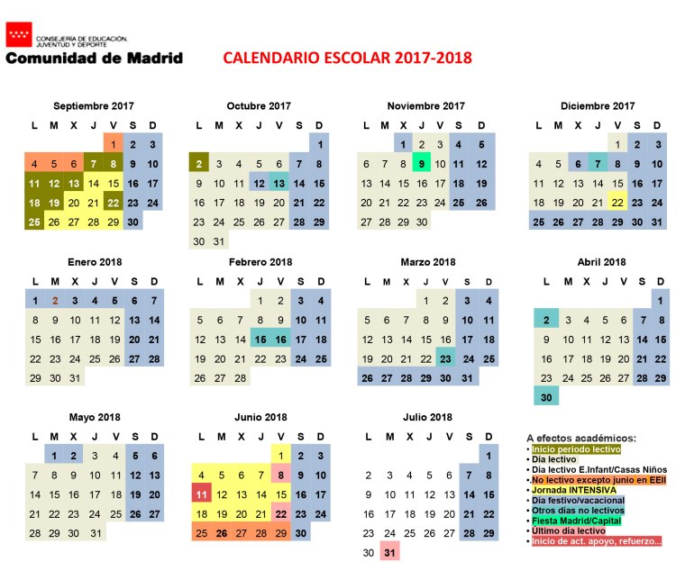 Preparando la vuelta de las vacaciones, os dejamos aquí el calendario escolar de la Comunidad de Madrid para el próximo curso: