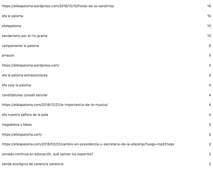 Aquí el listado de palabras claves que han traído visitantes a la web a través de los motores de búsqueda: