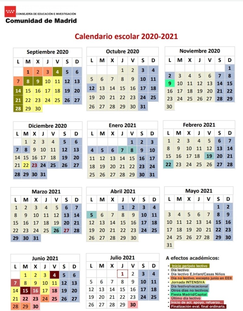 Hola Santiago. El calendario es el que está publicado ahora mismo en la Comunidad de Madrid. El cual se completa con el siguiente texto:
