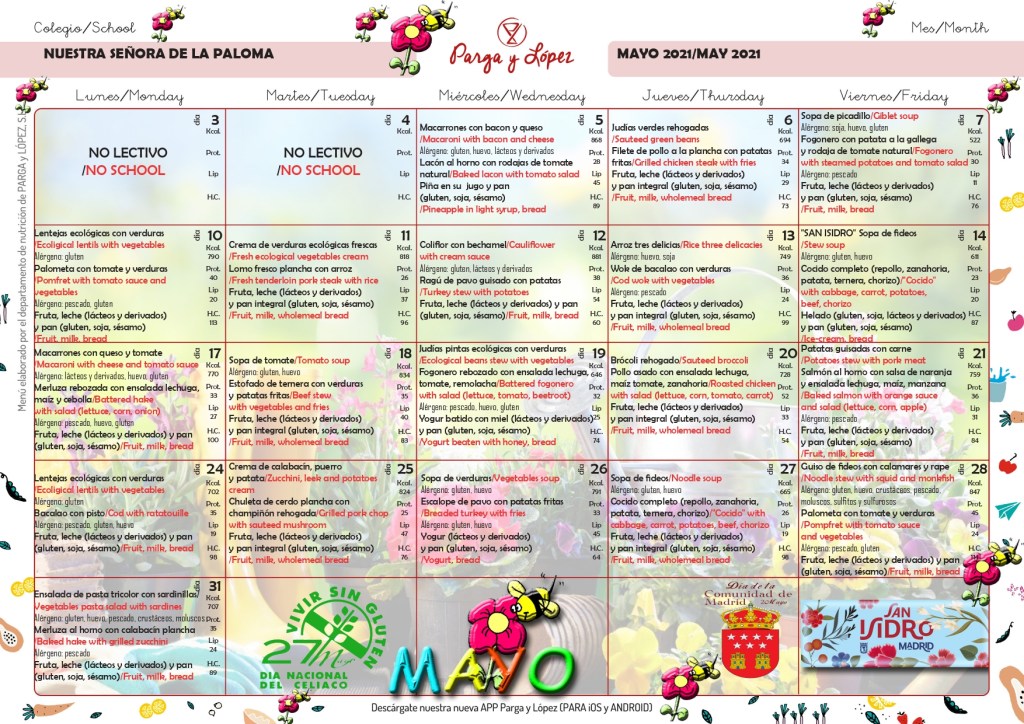 Aquí os dejamos los menús que la empresa de comedor pone a disposición de nuestras criaturas para el mes de mayo. Esperamos que todos y todas los disfruten.