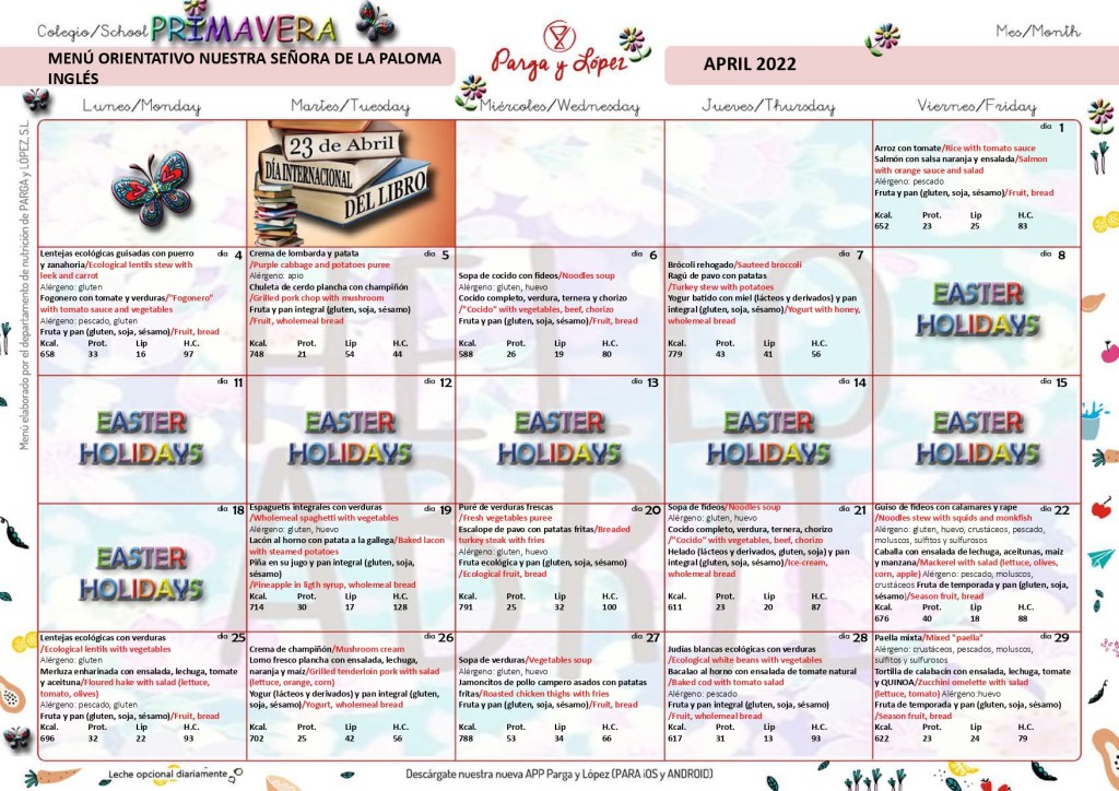 Aquí os dejamos los menús de este mes para que podáis organizaros en casa. Esperamos que nuestras criaturas los disfruten y se pongan fuertes para combatir estos fríos con los que ha empezado la primavera.