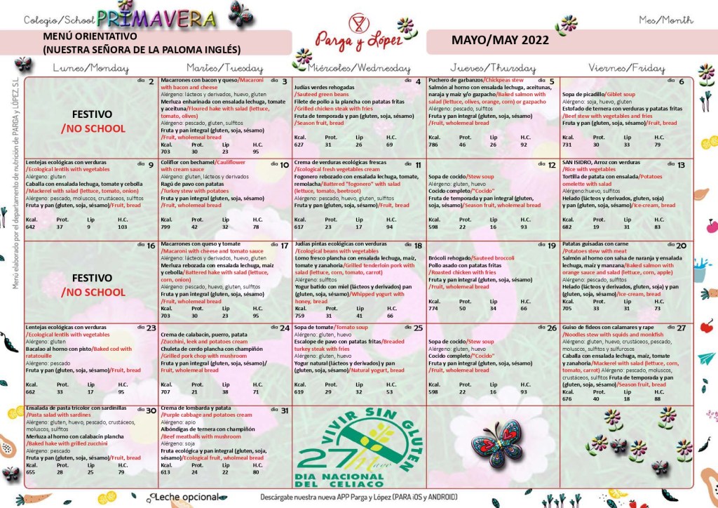 Aquí os dejamos los ricos y equilibrados menús que la empresa de comedor ha preparado para el mes de mayo. Esperamos que nuestras criaturas se requetechupen los dedos con ellos.