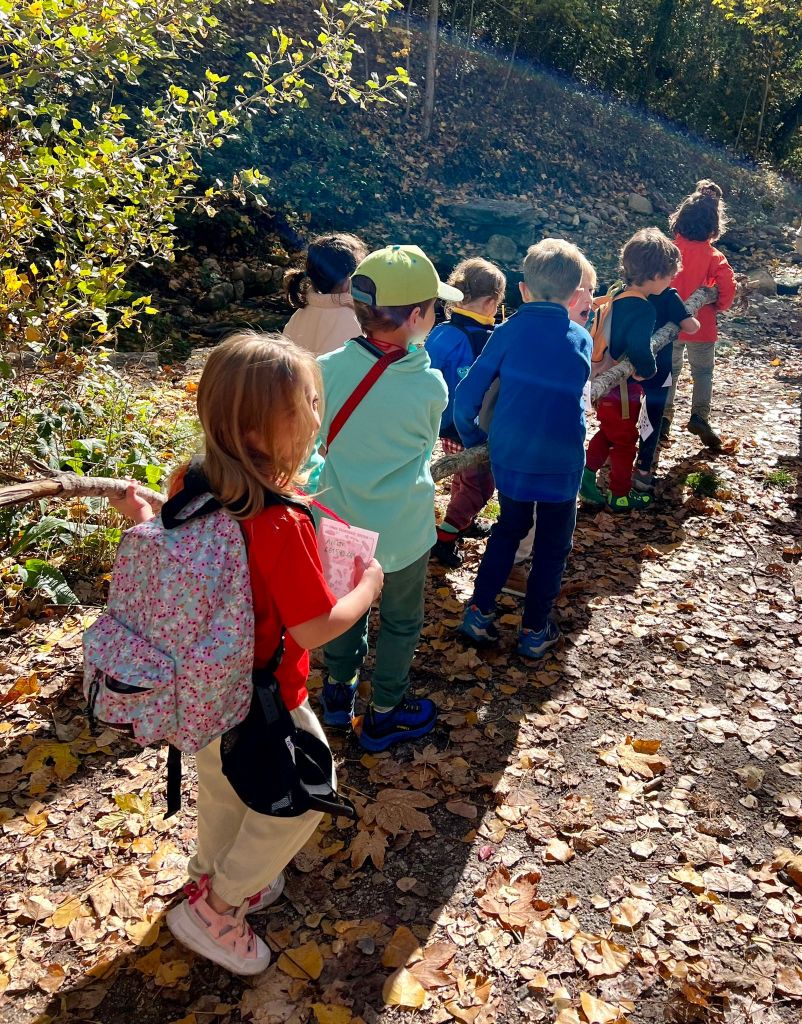 Y, tras reponer fuerzas y jugar un rato, continuamos la ruta hasta el Puente del Perdón, donde vimos una escuela de perros pastores en la que estaban entrenando a unos cachorros de mastines para recoger y guiar ovejas. Seguimos el camino atravesando un robledal hasta llegar a una explanada donde nos hicimos la inevitable foto de grupo.