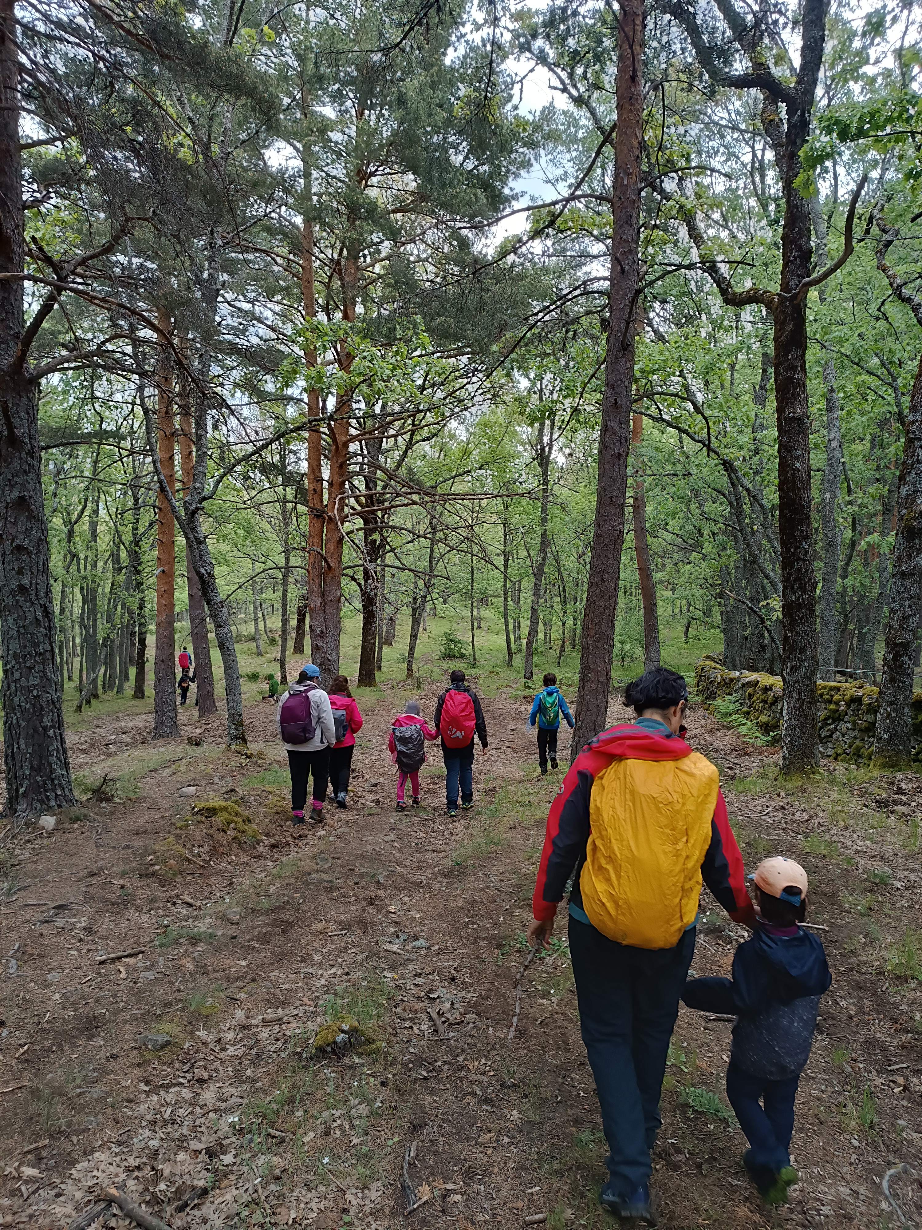 El grupo de “PEQUES” realizó una cómoda ruta de casi 9 km, compartiendo un rato camino con los “mayores” y separándonos luego para ir a lo largo del río Lozoya (o de la Angostura) hasta llegar a una praderita donde comer los bocatas y descansar para volver por el mismo camino.