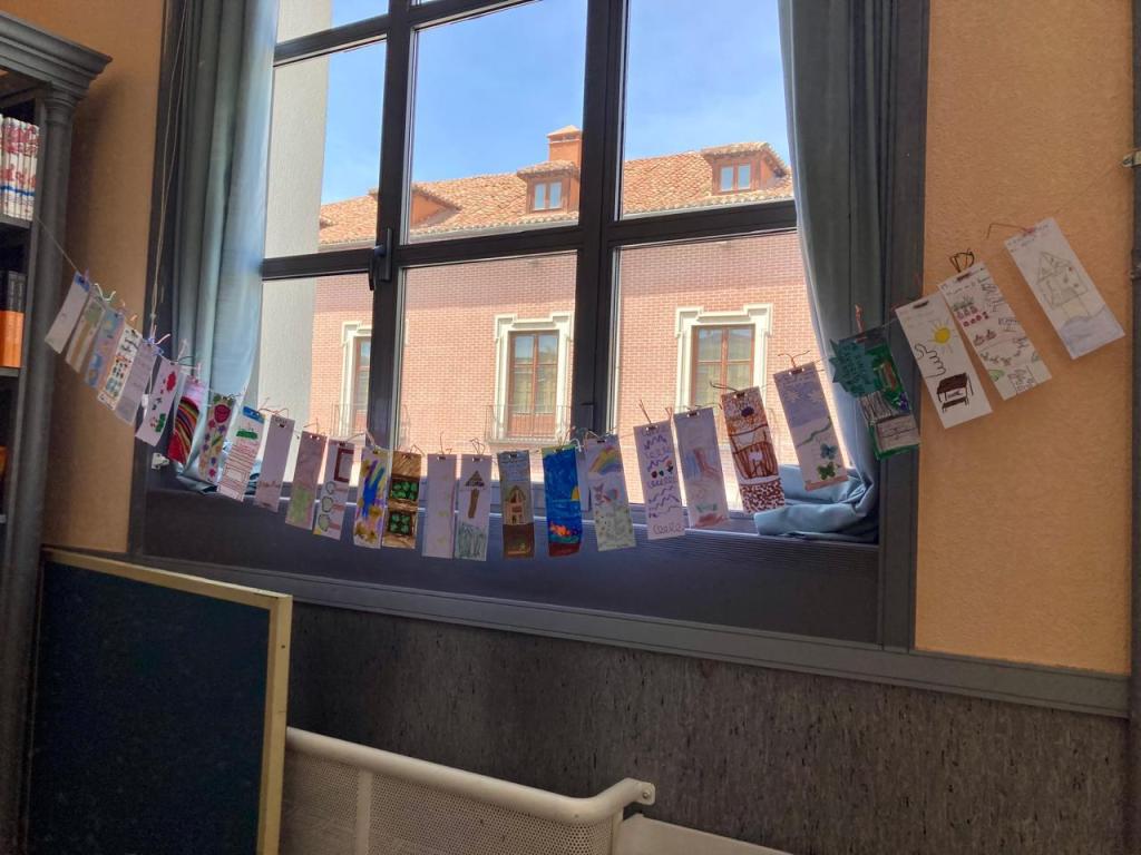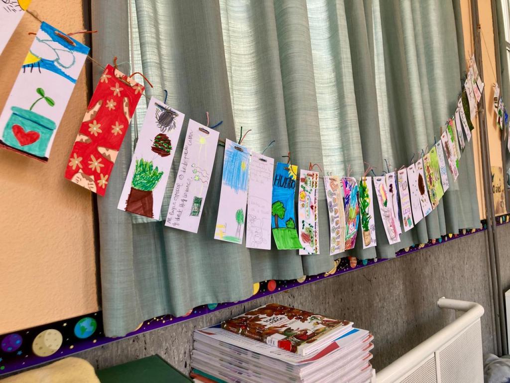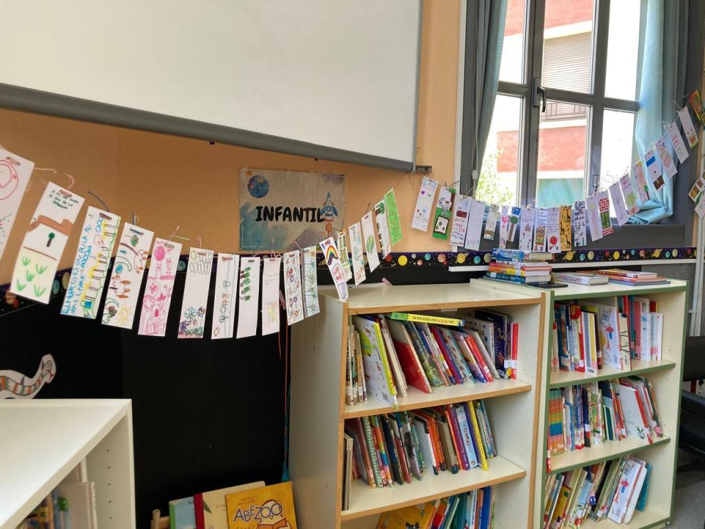 Además, ayer fue el Día de la Tierra, así que para conmemorar ambas fechas hemos preparado, junto con la comisión de Huerto, una exposición en la biblioteca con todos los marcapáginas que han hecho las y los peques del cole.