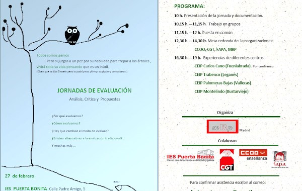 Nos hacemos eco de estas jornadas de evaluación que nos llegan desde el blog de la Plataforma 0-6, que tendrán lugar el próximo sábado: ¿Te preocupa la forma en que se […]