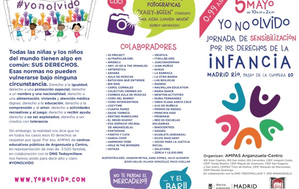 Este sábado 5 de Mayo en Madrid Río tendrá lugar una jornada de sensibilización por los derechos de la infancia con un montón de actividades en distintos espacios. Echad un ojo […]